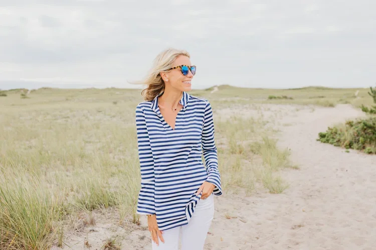 Yes. So my mom, um, who's a style inspiration for my sister and I, um, and someone we've always looked up to in that regard. Um, she, her and my dad, um, have live on the water in Wai and Connecticut in this really cute beach, uh, sailing town, and they.